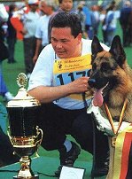 In 1996, Flick again presented a group of 17 dogs that all received the best possible rating. One male, Shanto’s Xano, a Dutch bred dog from Flick’s very first litter, was even rated VA! Two more dogs were among the top ten ratings, SG 4 in the 18- 24 months class males, "Quai zu den sieben Burgen" and SG 10 in the 12-18 females, "Zula von Arjakjo".