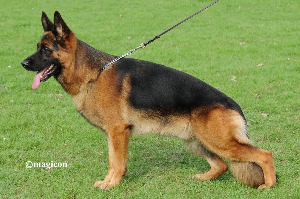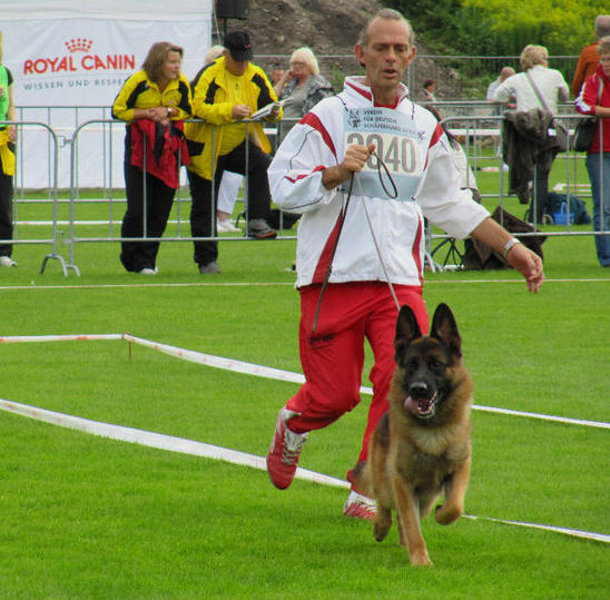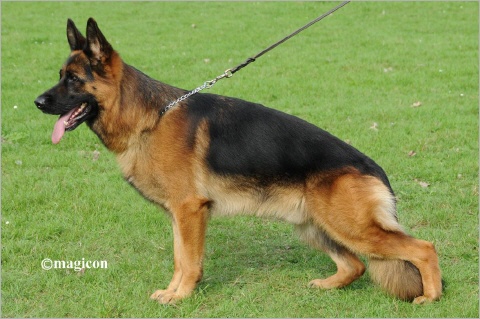Sehr temperamentvoller, mittelgroßer, mittelkräftiger, trockener, fester, in sehr gutem Verhältnis aufgebauter, sehr gut pigmentierter, ausdrucksvoller Rüde mit gutem Geprage. Hoher, langer Widerrist, gerader fester Rücken, sehr gute Länge und Lage der Kruppe. Sehr gute Winkelungen, ausgeglichene Brustverhältnisse, gerade Front. Geradetretend zeigt er sehr flüssige Gänge mit kraftvollem Nachschub und freiem Vortritt bei guter Erhabenheit Sicheres Wesen; TSB ausgeprägt, läßt ab.