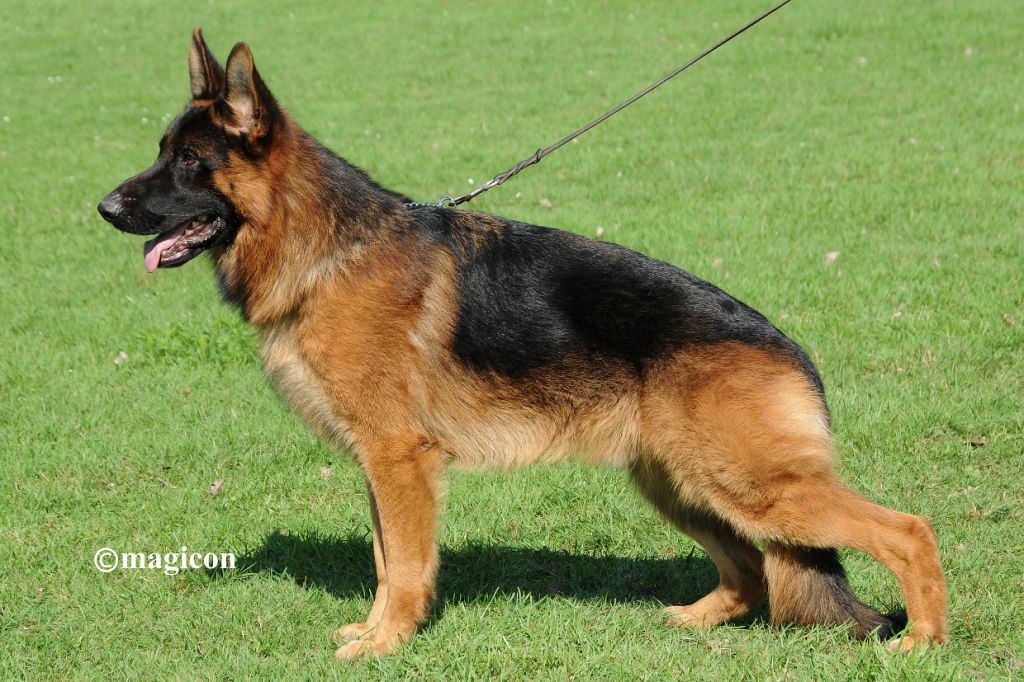 Mittelgroß, gehaltvoll, kräftig, trocken und fest, gestreckt, sehr guter Ausdruck, sehr gut pigmentiert, sehr gutes Gepräge. Hoher, langer Widerrist, gerader, fester Rücken, gute Länge und Lage der Kruppe. Sehr gut gewinkelt, ausgeglichene Brustverhältnisse, gerade Front. Geradetretend, sehr kraftvolle, sehr raumgreifende Gänge. Sicheres Wesen, TSB ausgeprägt.