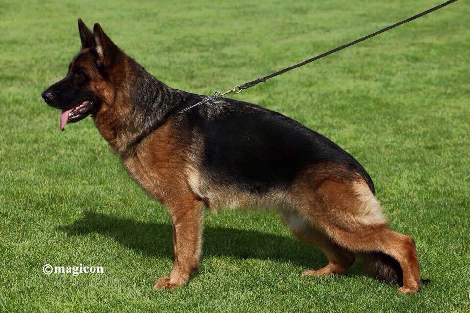 An der oberen Größengrenze, gehaltvoll, kräftig, trocken und fest, gute Gebäudeverhältnisse, sehr guter Ausdruck, sehr gut pigmentiert. Hoher, langer Widerrist, gerader, fester Rücken, gute Länge und Lage der Kruppe. Vome gut, hinten sehr gut gewinkelt, ausgeglichene Brustverhältnisse, gerade Front. Gerade tretend, sehr kraftvolle, sehr raumgreifende Gänge, bei sehr guter Erhabenheit. Sicheres Wesen, TSB ausgeprägt.