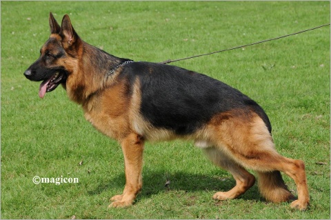 Mittelgroßer, korrekt aufgebauter Rüde mit sehr guter Führigkeit.
