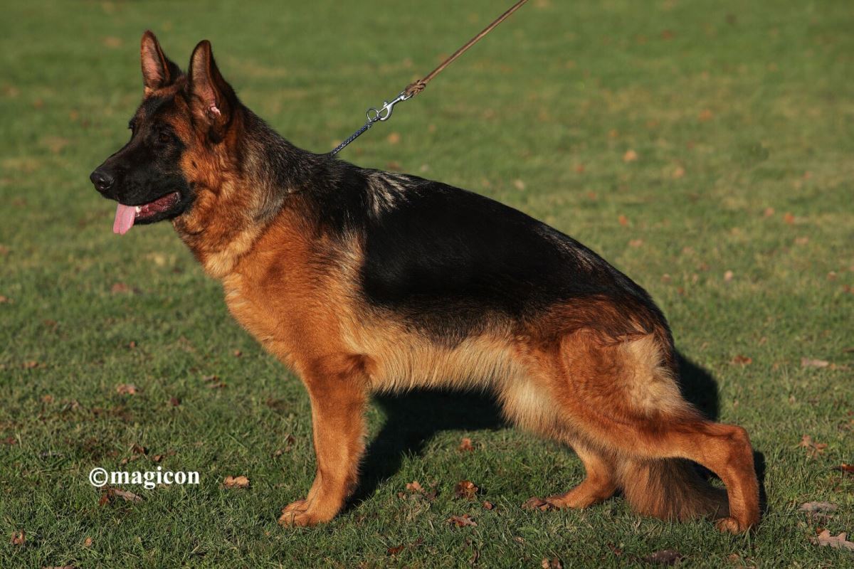 Groß, gehaltvoll, kräftig, trocken und fest, sehr gute Gebäudeverhältnisse, sehr guter Ausdruck, sehr gut pigmentiert, feminin. Hoher, langer Widerrist, gerader, fester Rücken, gute Länge und Lage der Kruppe. Sehr gut gewinkelt,ausgeglichene Brustverhältnisse, gerade Front. Gerade tretend, sehr kraftvolle, sehr raumgreifende Gänge bei guter Erhabenheit. Sicheres Wesen, TSB ausgeprägt.