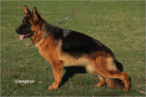 Sehr temperamentvolle, kraft- und gehaltvolle Zuchthündin.