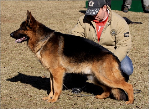 Mittelgroß, gehaltvoll, mittelkräftig, trocken und fest, gute Gebäudeverhältnisse, sehr guter Ausdruck, sehr gut pigmentiert, gutes Gepräge. Hoher, langer Widerrist, gerader, fester Rücken, gute Länge und Lage der Kruppe. Vorne gut, hinten sehr gut gewinkelt, ausgeglichene Brustverhältnisse, gerade Front, geradetretend, kraftvolle, raumgreifende Gänge. Sicheres Wesen, TSB ausgeprägt; läßt ab.