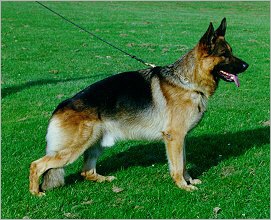 gelagerte Kruppe von guter Länge. Sehr gute Winkelungen der Vor- und Hinterhand, gut entwickelte Vor- und
