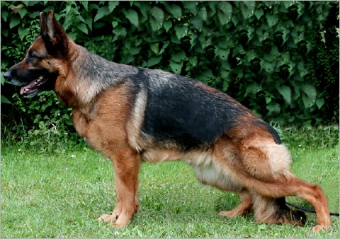 Mittelgroß, mittelkräftig, sehr gut pigmentiert, hervorragender Ausdruck, markantes Gepräge, sehr gut verlaufende Ober- und Unterlinie, ausgewogene Rippen- und Brustbildung, gerade Front. Korrekte Gliedmassen-Stellung, trockenes und festes Gesamtgefüge. Geradetretend zeigt sie aus guter Vorhand- und sehr guten Hinterhandwinkelungen guten Vortritt und betont kraftvollen Nachschub in sehr guter Bewegungsharmonie. Wesen sicher, TSB ausgeprägt, läßt ab.