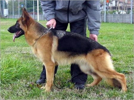 In sehr gutem Verhältnis aufgebaute, große, mittelkräftige, gehaltvolle, feste, aufmerksame, sehr typ- und ausdrucksvolle Hündin. Hoher Widerrist, schöne Linie, gute Kruppe. Korrekte Winkelungen, ausgeglichene Brustverhältnisse, gerade Front. Korrekte Schrittfolge, kraftvolle, flüssige, geräumige Gänge. Sicheres Wesen, TSB ausgeprägt; läßt ab.