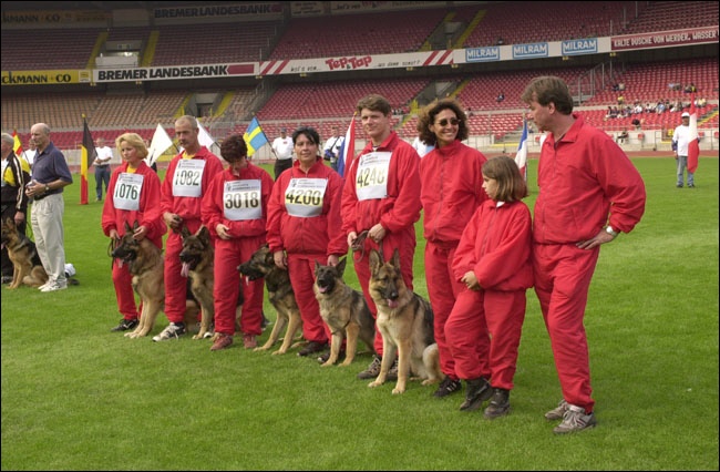 3 Rüden und 2 Hündinnen wurden gezeigt. Auch diese Gruppe hatte den höchsten Schwierigkeitsgrad (5/5). Anerkennenswert, dass es der Züchterin gelungen ist, eine graue Gruppe zu stellen, die nicht nur wegen der Farbe die Höchstbewertung in der Einheitlichkeit erreichte. Die Qualität der Einzeltiere war sehr gut. 2 Teilnahmen in der GHKL. |