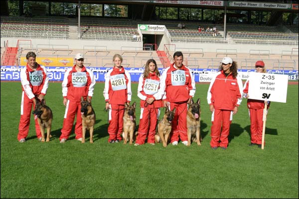 Frau van Dorssen nimmt nun schon zum 14. Mal an diesem Wettbewerb teil. Die diesjährige Gruppe mit höchstem Schwierigkeitsgrad und Kombinationsvielfalt besteht aus überaus typvollen, sehr temperamentvollen Hunden mit hervorragender Pigmentierung. Eine gute Differenzierung der Geschlechter und richtige Mittelgröße, sowie korrekte Trittfolgen mit festen Sprunggelenken sind weitere Vorteile dieser Zuchtgruppe. Blutlich entstammen fast alle Tiere der "Ursus" Linie.