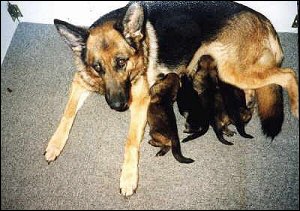 Fast alle grauen Hündinnen und die meisten schwarz-braunen mit grauen Vorfahren erbrechen Futter an ihre Welpen - ziemlich fanatisch übrigens.