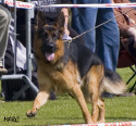 Körbericht: Mittelgroß, gehaltvoll, kräftig, trocken und fest, sehr gute Gebäudeverhältnisse, sehr guter Ausdruck, sehr gut pigmentiert, sehr gutes Gepräge. Hoher, langer Widerrist, gerader, fester Rücken, gute Länge und Lage der Kruppe. Sehr gut gewinkelt, ausgeglichene Brustverhältnisse, gerade Front. Geradetretend, sehr kraftvolle, sehr raumgreifende Gänge. Sicheres Wesen, TSB ausgeprägt; lässt ab.