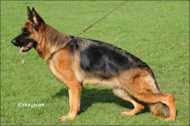 Groß, mittelkräftig, gehaltvoll, typ- und ausdrucksvoll ,trocken und fest, sehr gut pigmentiert, in sehr gutem Verhältnis aufgebaut. Sehr gutes Gepräge, hoher Widerrist, harmonische Ober- und Unterlinie, sehr gute Länge und Lage der Kruppe, korrekte Winkelungen, ausgeglichene Brustverhältnisse, gerade Front. Geradetretend, flüssige, raumschaffende, kraftvolle Gänge mit freiem Vortritt und wirksamem Nachschub. Sicheres Wesen,TSB ausgeprägt; läßt ab.