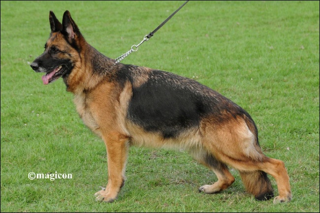 Körbericht: Mittelgroß, mittelkräftig, gehaltvoll, korrekte Gebäudeverhältnisse, kräftiger, ausdrucksvoller Kopf, guter Widerrist, gerader Rücken, richtig gelagerte, genügend lange Kruppe, gerade Front, ausgewogene Brustverhältnisse, gute Winkelung der Vor-, sehr gute Winkelung der Hinterhand mit kräftiger Bemuskelung, temperamentvolles Gangwerk mit kraftvollem Nachschub, gutem Vortritt und richtiger Gleichgewichtslage. Wesen sicher, TSB ausgeprägt, läßt nicht ab.