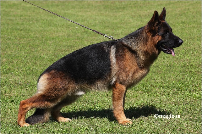 Mittelgroß, gehaltvoll, kräftig, trocken und fest, gute Gebäudeverhältnisse sehr guter Ausdruck, sehr gut pigmentiert, sehr gutes Gepräge. Hoher, langer Widerrist, gerader, fester Rücken, gute Länge und Lage der Kruppe. Vorne gut, hinten sehr gut gewinkelt, ausgeglichene Brustverhältnisse, gerade Front. Geradetretend, sehr kraftvolle, sehr raumgreifende Gänge. Sicheres Wesen; TSB ausgeprägt.