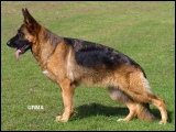 Körbericht: Mittelgroß, gehaltvoll, kräftig, sehr ausdrucksvoll und geprägestark. Hoher Widerrist, fester Rücken, sehr gute Länge und Lage der Kruppe. Sehr gut gewinkelte Hinterhand, sehr korrekt gelagerter Oberarm. Korrekte Brustverhältnisse, normale Front, gerade Schrittfolge. Weit ausgreifende Gänge mit wirksamem Nachschub, wirksamer Rückenübertragung und freiem Vortritt. TSB ausgeprägt; läßt ab.