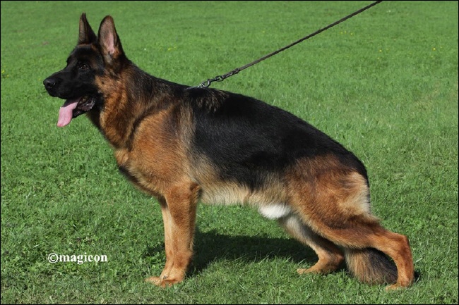 V. Besondere Vorzüge: Sehr gut pigmentierter Rüde mit korrekter Anatomie und sehr gutem Bewegungsablauf.