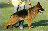Körbericht: Knapp mittelgroß, mittelkräftig, genügend gehaltvoll, sehr gut pigmentiert, ausdrucksvoller Kopf mit dunkler Maske, ausgeprägter Widerrist, fester, gerader Rücken, gut gelagerte Kruppe von genügender Länge. Gerade Front, normale Brustverhältnisse, korrekte Winkelungen der Vor- und Hinterhand, temperamentvolles Gangwerk mit guter Schrittweite und sehr guter Gleichgewichtslage. Wesen sicher, TSB ausgeprägt; läßt ab.