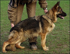 Körbericht: Eine mittelgroße, mittelkräftige, ausdrucksvolle Hündin mit sehr guter Oberlinie, normale Länge und Lage der Kruppe, korrekte Front, sehr gute Winkelung der Vor- und Hinterhand, bringt freie, raumgreifende Gänge. TSB ausgeprägt; läßt ab.