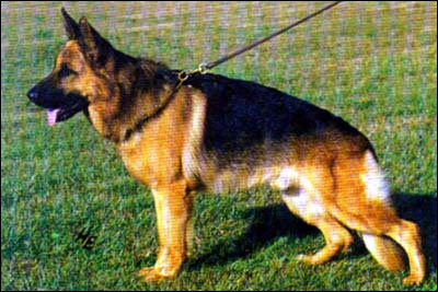 Körbericht: Mittelgroß, -kräftig, trocken und fest, sehr typ- und ausdrucksvoll, Ober- und Unterlinie harmonisch, Widerrist hoch, Rücken gerade, Kruppenlage gut. Vor- und Hinterhandwinkel sehr gut, gerade Front, Brustverhältnisse ausgeglichen. Gerade Schrittfolge, Gänge weit ausgreifend und kraftvoll, bodendeckende Gänge, Vortritt sehr frei, Nachschub sehr wirksam. Wesen sicher, Härte, Mut und Kampftrieb ausgeprägt; läßt ab.