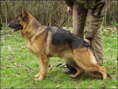 Körbericht: Typ- und ausdrucksvolle, übermittelgroße, mittelkräftige, trockene, feste Hündin mit hohem Widerrist, guter Linie und guter Kruppe. Sehr gute Winkelungen in Vor- und Hinterhand, ausgeglichene Brustverhältnisse, gerade Front. Korrekttretend zeigt sie sehr flüssige, kraftvolle und weiträumige Gänge. Sicheres Wesen, TSB ausgeprägt; läßt ab.