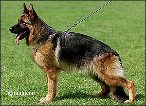 Körbericht: Mittelgroß, gehaltvoll, mittelkräftig, trocken und fest, gute Gebäudeverhältnisse, sehr guter Ausdruck, feminin. Hoher, langer Widerrist, fester, gerader Rücken, gute Länge und Lage der Kruppe. Sehr gut gewinkelt, ausgeglichene Brustverhältnisse, korrekte Front. Leicht hackenengtretend, vorne korrekttretend, sehr raumgreifende, sehr kraftvolle, flach über den Boden gehende Gänge mit sehr guter Rückenübertragung. Sicheres Wesen, TSB ausgeprägt; läßt ab.